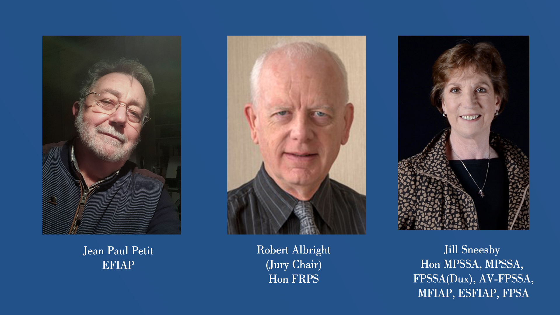 He is particularly sensitive to originality and creativity and likes to be kept on the edge of his seat from the beginning to the end of a AV production. Rigor, thoroughness of work, technical cleanliness are also criteria to which he attaches great importance. - Robert Albright Robert gained his and FRPS in AV in 2002 at the 25th anniversary of The RPS AV Group. He went on to receive the HonFRPS distinction in 2017 when he became the RPS President for which he served a two year term.