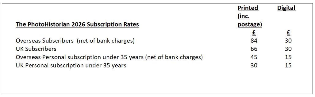 For further information about subscriptions, email Geoff Blackwell at historicaltreasurer@rps.org