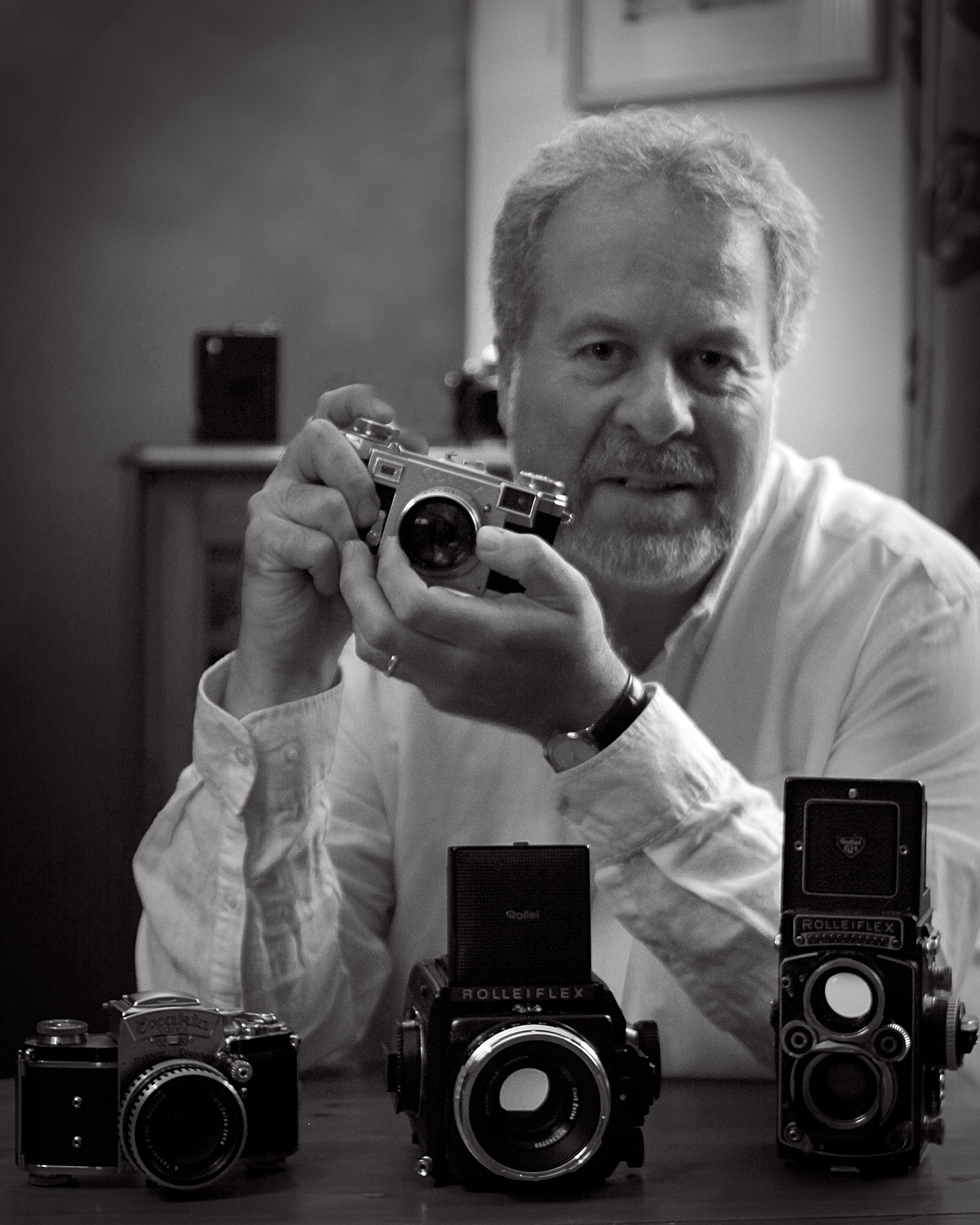 Outside of work the kitchen table still has a major role to play in his day to day life, often with a mechanical camera in pieces being serviced and brought back to life, or bicycle parts being cleaned and serviced for another outing around the glorious Surrey Hills, he also enjoys being out on the water in his Kayak and organising an annual kayak marathon race.