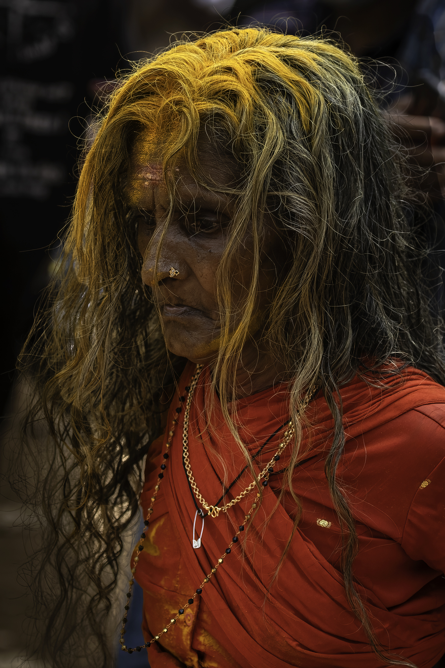 The unique cultural phenomena of Kodungallur Bharani shows the blending of tradition and spirituality in an extraordinary manner. This celebration, held annually at the historic Kavu Bhagavathy Village, Kerala, promises to be a feast for the senses, with its fiery rituals, frenzied beats of percussion, and colourful processions. Devotees are seen dressed in red and carrying traditional weapons. The festival signifies the unity of people who come together to observe age old traditions. Here, oracles participate in ancient rites, decorating themselves with turmeric and becoming conduits for divine messages; turmeric is thought to have protective qualities. The act of piercing their foreheads when in trance-like states causes blood to flow down their faces. People here transform into living deities, wearing elaborate costumes of gods and goddesses, embodying the divine essence. The experience of documenting the Kavu Bhagavathy ritual was overwhelming.