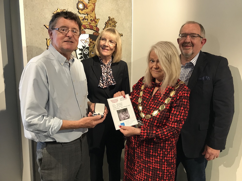 Image credit: Barrie Brown receiving a presentation from RPS President Del Barrett. © Janet Haines