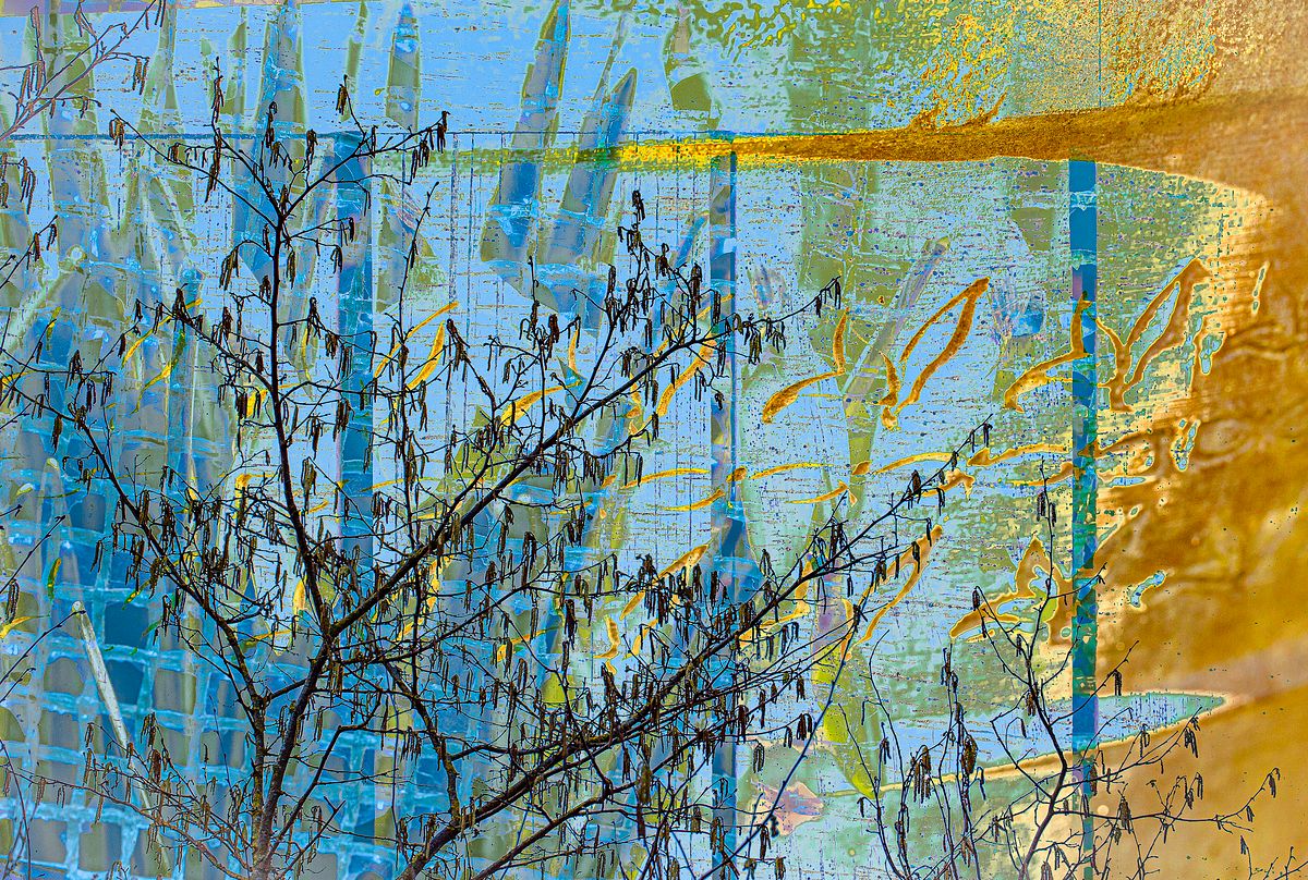 "A lockdown spring and the hazel catkins emerge, but we are still locked in. I used in-camera multiple exposures to combine several elements in my garden."