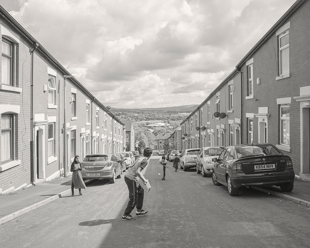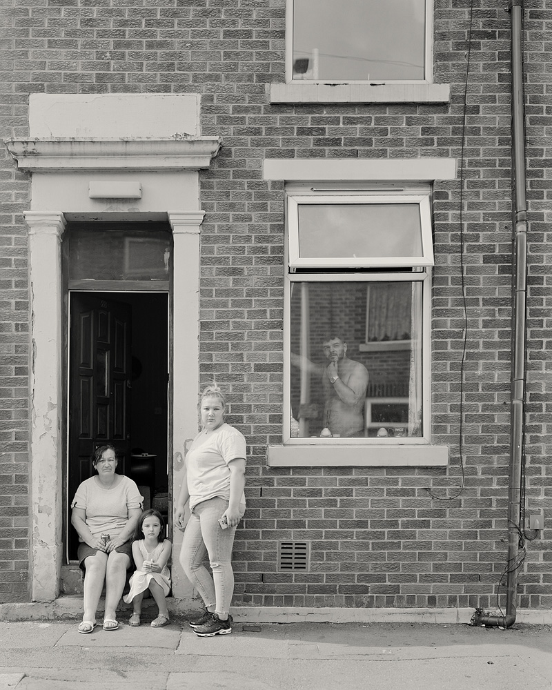 The work started in mid to late 2019 and continued throughout 2020, right through the first phases of the COVID-19 pandemic. In some senses the difficulties of working during this time have influenced the work I made – some of the 2019 and early 2020 pictures are made indoors in people’s houses for example, whereas from summer 2020 everything was made in the street to be COVID-19 secure. But it was also interesting and informative to see the media reports about COVID-19 and the focus on communities coming together, the early simplistic discussion and thinly veiled prejudice evident in stories about how the pandemic was rife in places like Blackburn and Bolton. Often this discussion was ill-informed and testifies, yet again, to the simplistic narratives surrounding working class and minority ethnic communities. There was little talk, for example, about the kinds of roles and public facing jobs people in these communities have – the kinds of roles that lead them to be more exposed to the virus in the first place – it seemed always to be about ethnicity and culture, once more diverting attention away from low pay, housing crises and social inequality. Of course, it also appeared to be a revelation to many that communities came together in the face of this crisis, but as many people know, working communities on terraced streets have always been tight-knit and supportive of each other. It may have been a surprise to some, but to the people of Bank Top and other neighbourhoods, that kind of solidarity is a given and one of the reasons the community stays together and thrives.