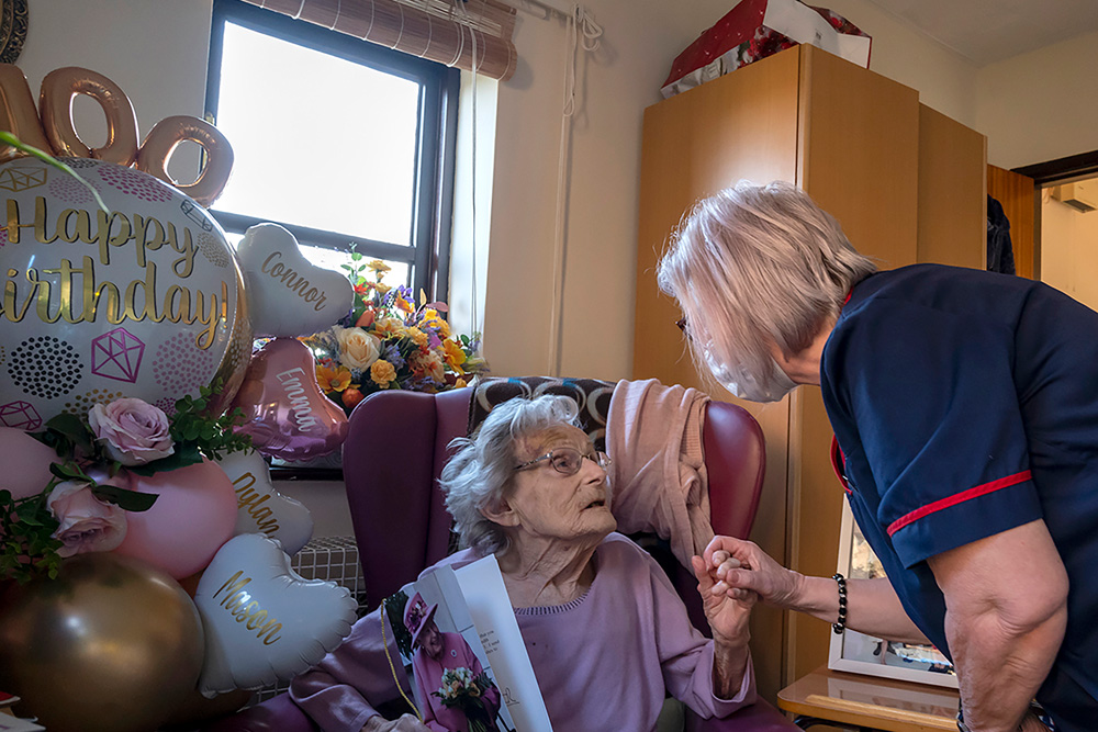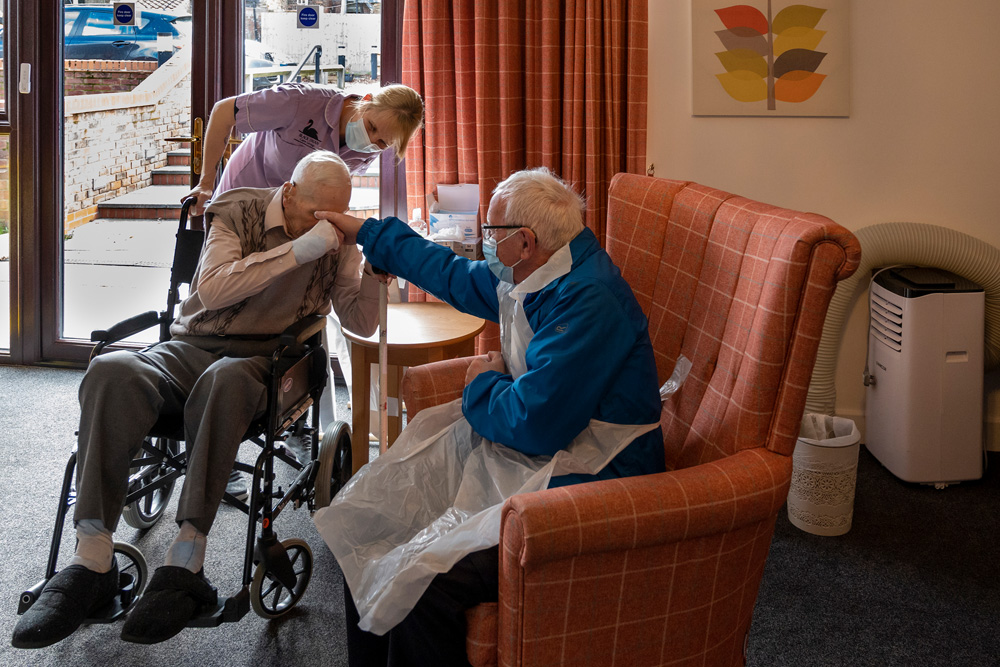 As primary care clinicians, we are often the first point of patient contact during the pandemic when COVID-19 causes havoc. We witnessed first-hand the devastating effects of the pandemic on care home residents. Media attention, including the RPS Contemporary blog series (Numbers 18, 19, 22, 23, 25, 28) had often been on hospital/ITU patients and families (QV RPS Contemporary blog by Giles Duley HonFRPS https://rps.org/news/groups/contemporary/2021/january/inside-imperial-college-healthcare-nhs-trust-icus/) but the stressful lives of residents and workers of care-homes across the country have remained largely undocumented with photography.
