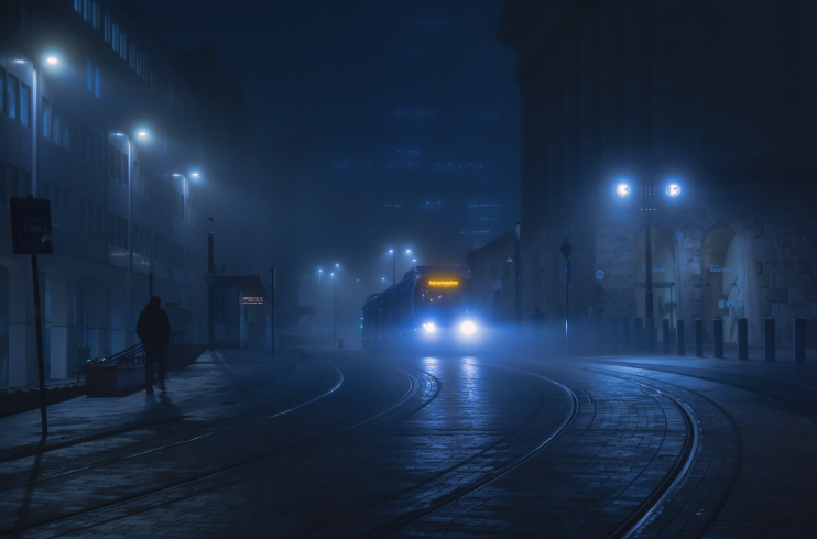 Overcast skies can enhance long exposures. If you find yourself shooting during windy weather, using an ND filter to create intriguing long exposures can be really fun. Wet, windy weather means the clouds move faster than usual and even a 30-second exposure can give an impression of movement and narrative in a single frame. This can be even more effective when including transportation to create light trails. In Birmingham the trams provide endless opportunities to add light trails to long exposures, especially during dusk.