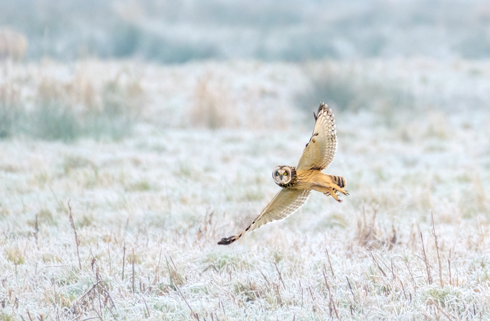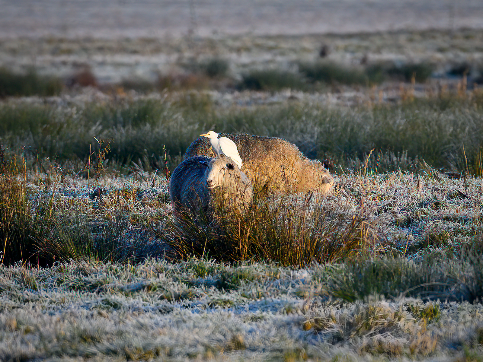 The area of land the comprises the Ouse Washes near Ely was almost completely frozen over on Wednesday and there was a mist over the area giving some very atmospheric shots of the landscape, swans, owls and other birds (Image above Dave McKay). We spent a time watching 3 short-eared Owls flying form their roost in the reeds - too close and quick to get an image, but enjoyed views of Cattle Egrets on the backs of the sheep. We decided to go onto the main reserve.