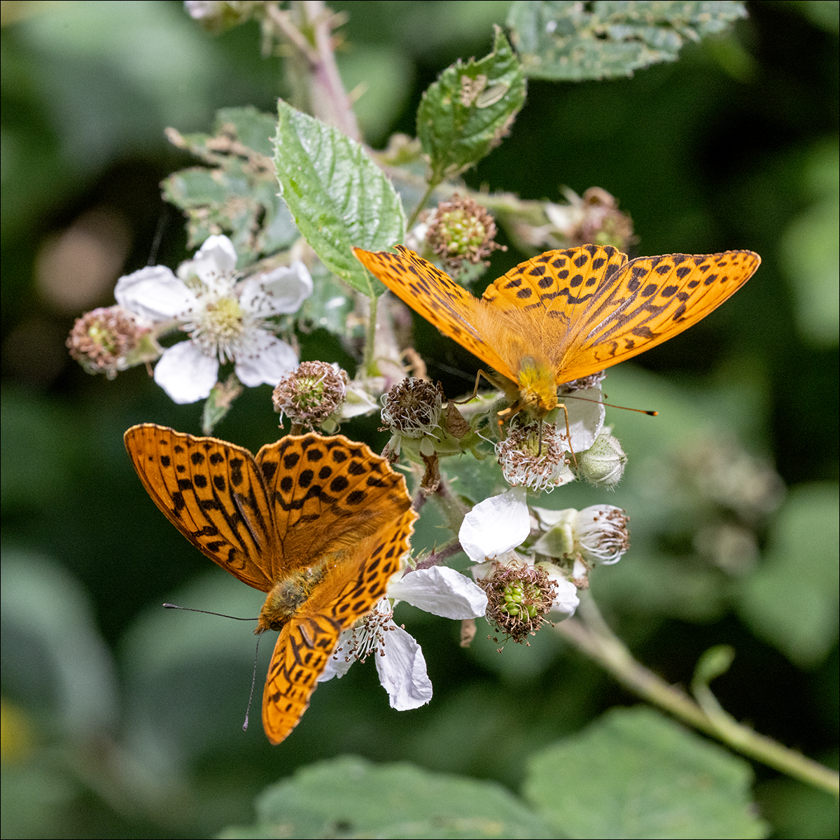 Silver -washed Fritillaries were flying in large numbers, many of them still in pristine condition - such a wonderful sight. Brimstones are always a welcome subject with their magenta heads (photographs by Duncan Locke).