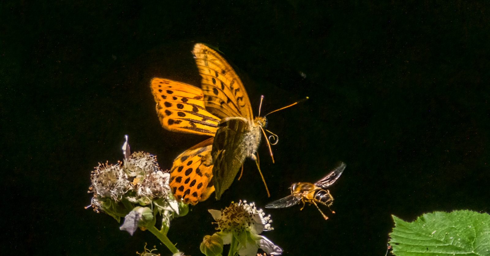 Unfortunately, although we searched the wood in the afternoon, the Purple Emperor failed to make an appearance but the large number of Fritillaries will be remembered for a long while (Fritillary and Hoverfly below, Ann Miles)