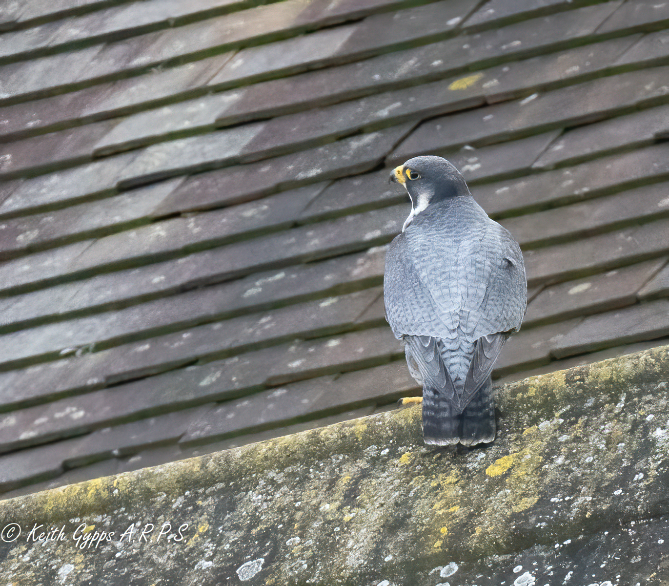Some of the party later walked up to the Cathedral as it was reported that the pair of Peregrines had returned to the area. No sign of them when we arrived but we were shown a wonderful crevice in the walls where a Nuthatch was busy building and entrance of mud to its nesting area (Ann Miles). The Nuthatch was soon abandoned as the Peregrine pair arrived with the male alighting on the Cathedral and calling to the female. He took off and the pair gave a wonderful aerobatic display though not really a photographic opportunity as distant and into the light (Peregrines Keith Gypps and Mike Harris).
