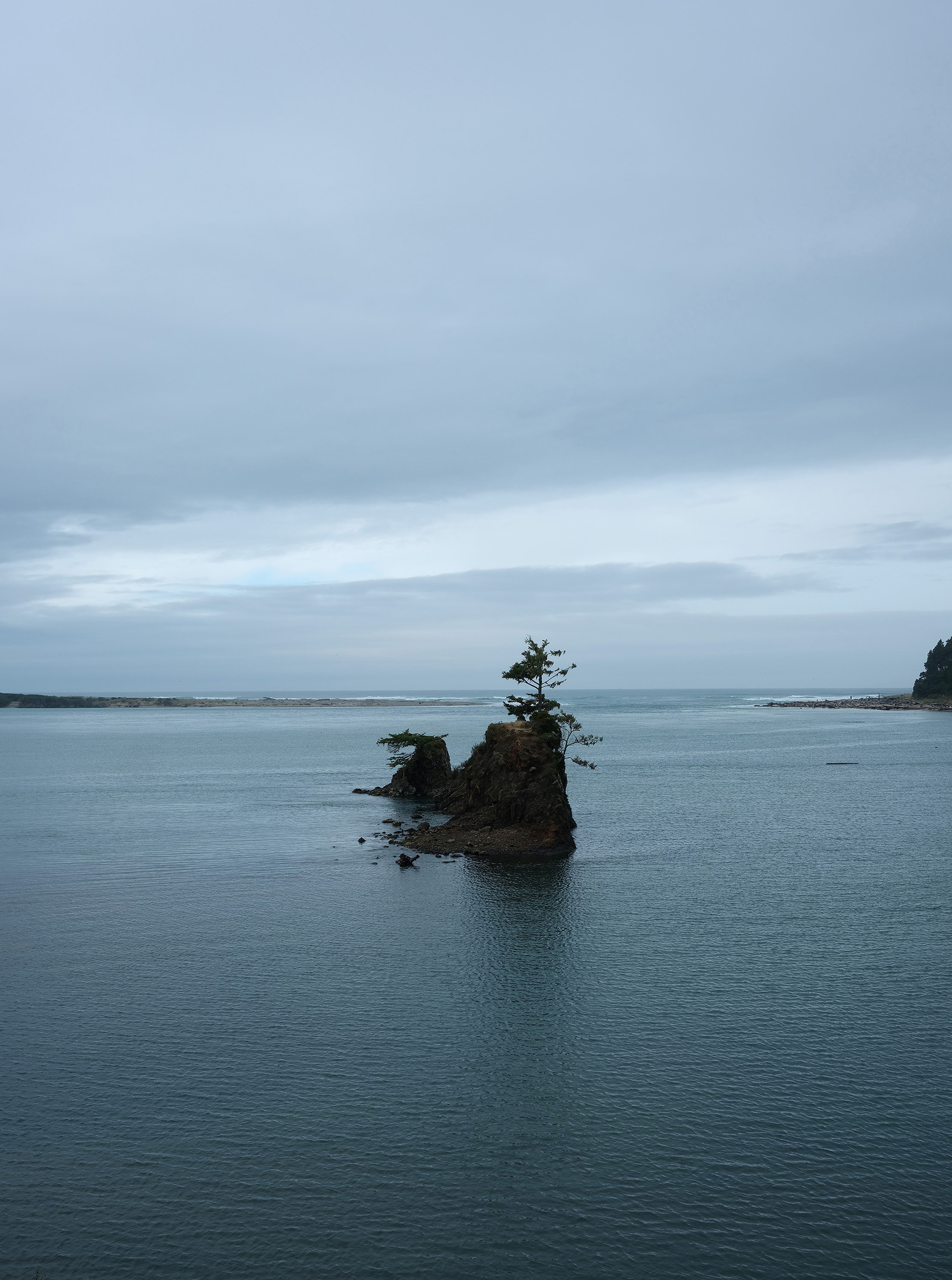 Tree separated from the coastal rainforest by the incoming tide, Lincoln City, Oregon, 2023.