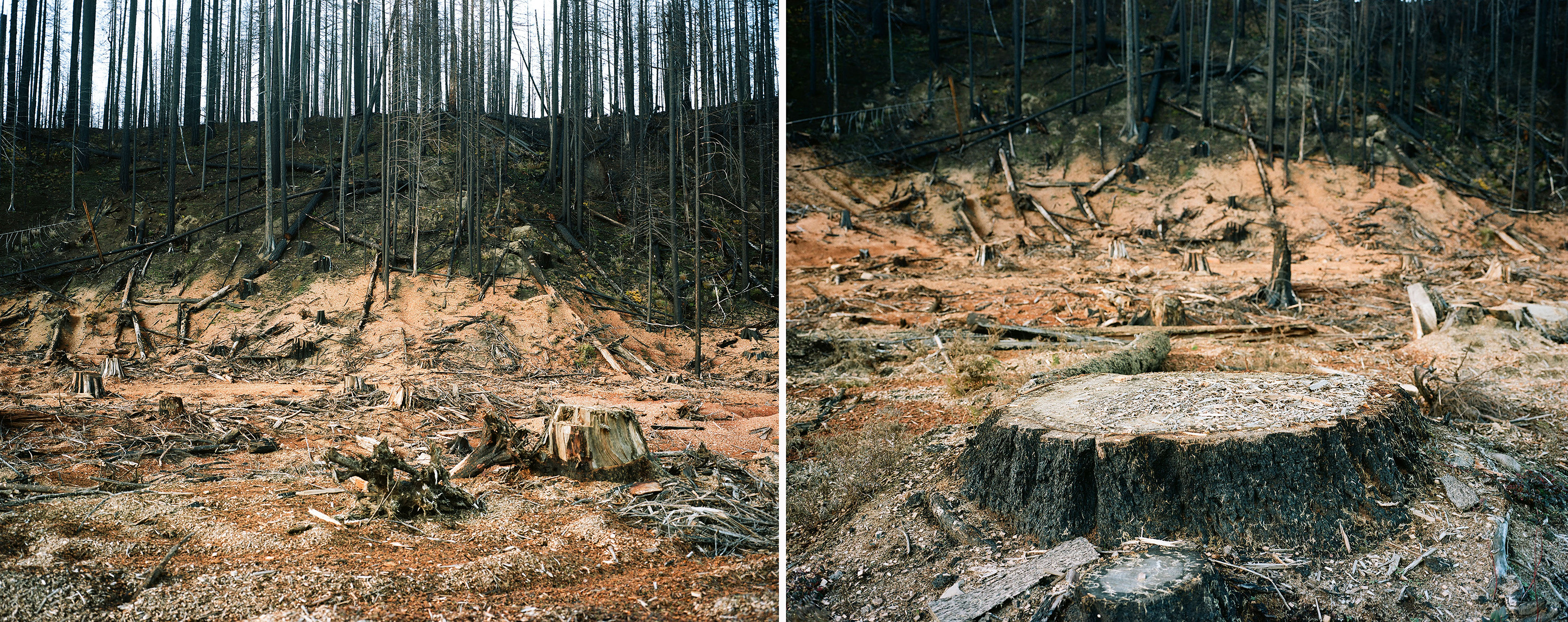 Symptomatically, my artistic inquiry into Pacific Northwest forest ecosystems began in 2021 when I saw the aftermath of a major wildfire. We take pictures when we are responding to the impulse, a signal from the environment, and not because we have read books and scientific research. What feels like a massacre usually proves to be a massacre.