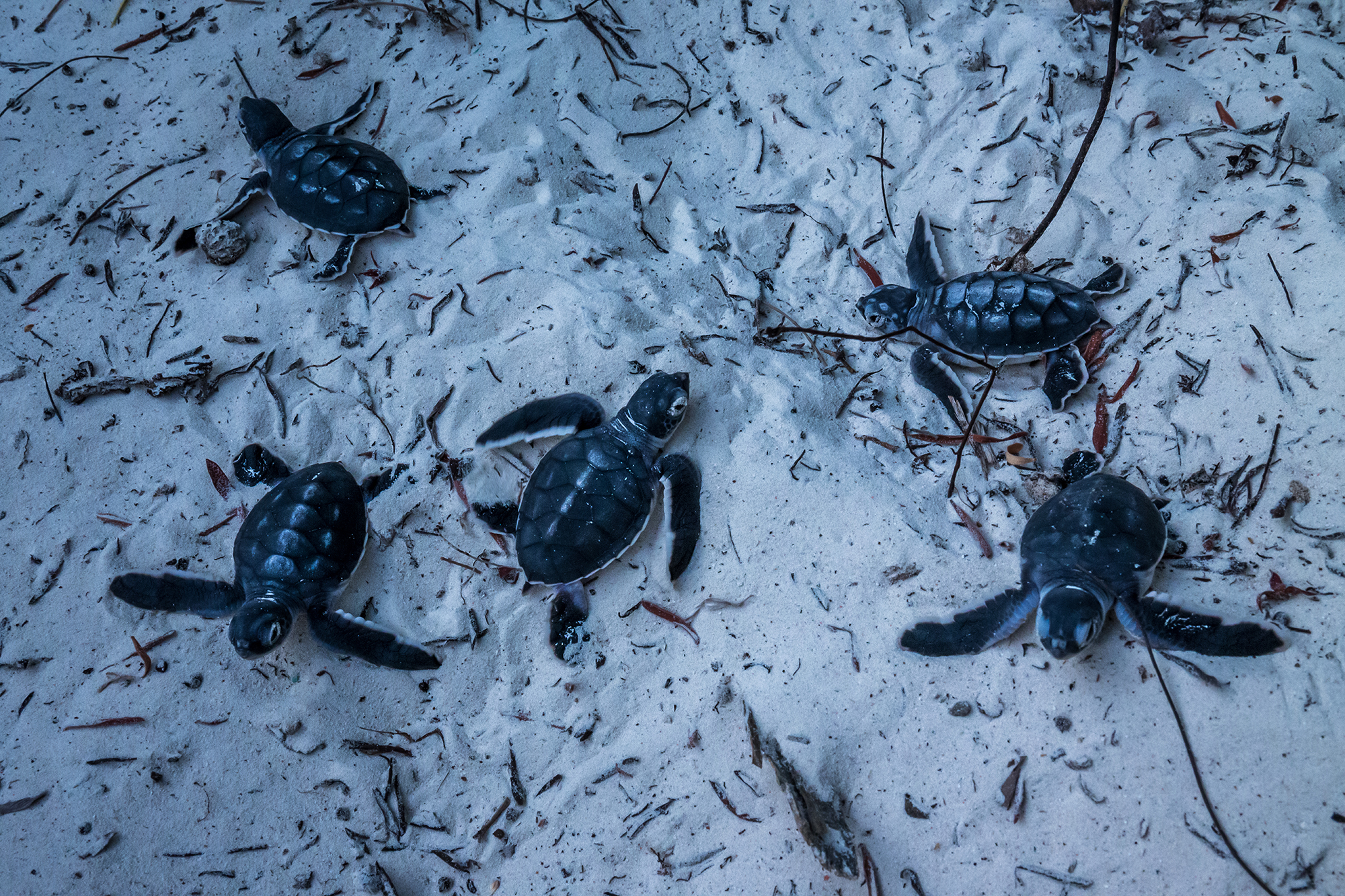 Green sea turtle hatchlings (Chelonia mydas), Mnemba Island, Tanzania.
