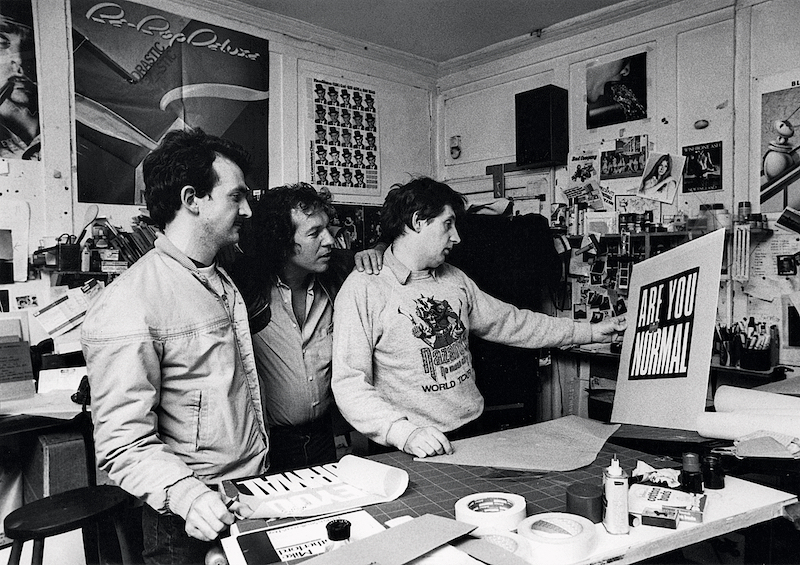 Peter Christopherson, Aubrey Powell and Storm Thorgerson work on the 1980 10cc album Look Here? Image: Hipgnosis Ltd