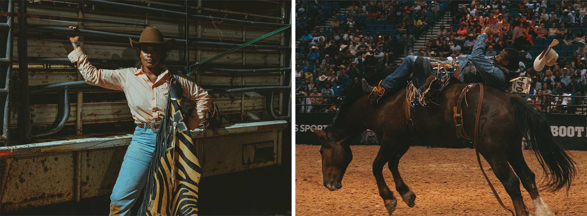 ‘Jadayia Kursh, Okmulgee, Oklahoma’; ‘Patrick Liddell, Las Vegas, Nevada’ from Eight Seconds: Black Rodeo Culture by Ivan McClellan
