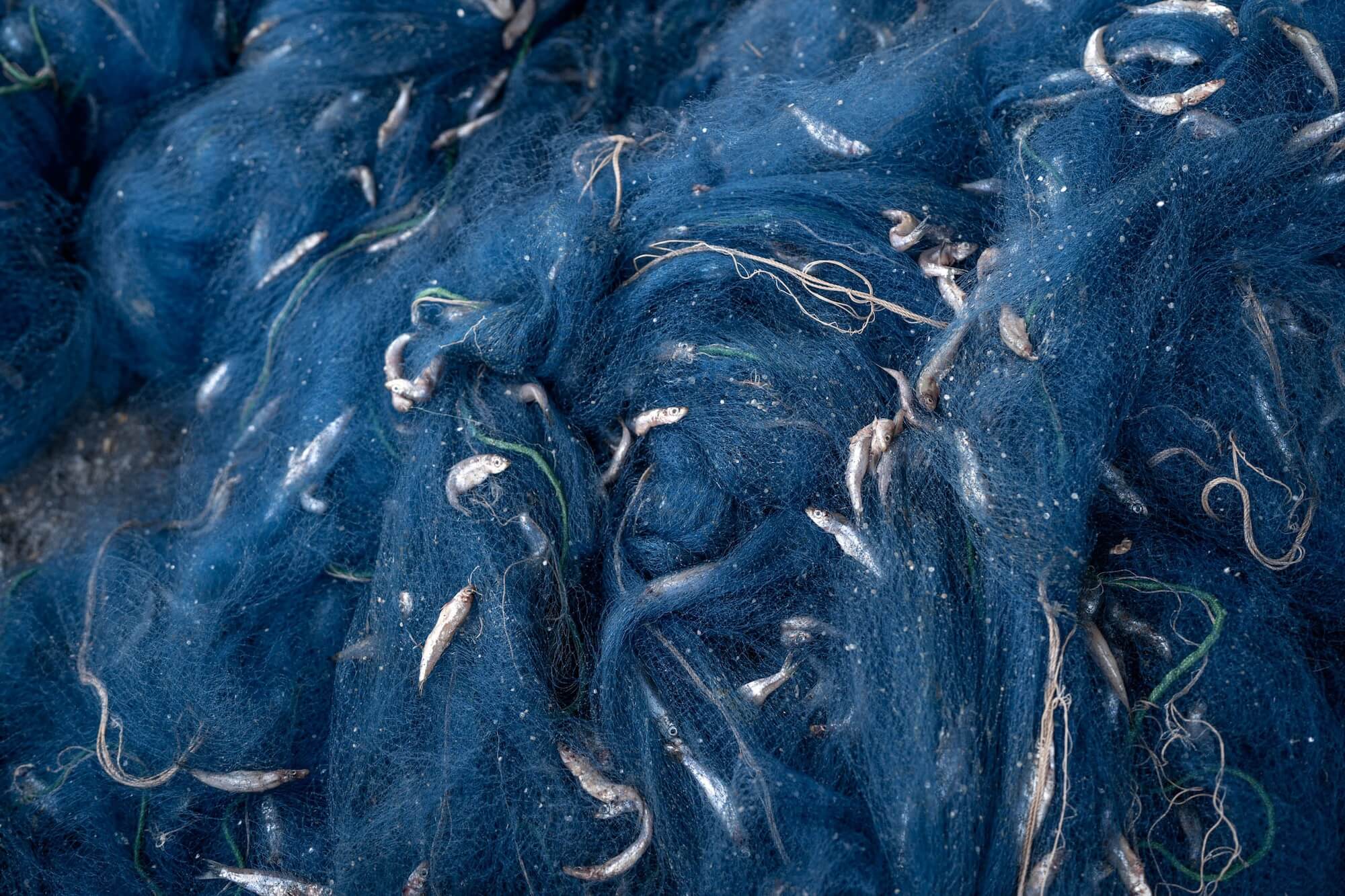 Sambaza, a sardine-like fish local to the waters of Lake Kivu, are captured in a net. Several factors, including overfishing and the presence of gas extraction plants, threaten the sambaza population. Goma, DRC, 20 March 2024.