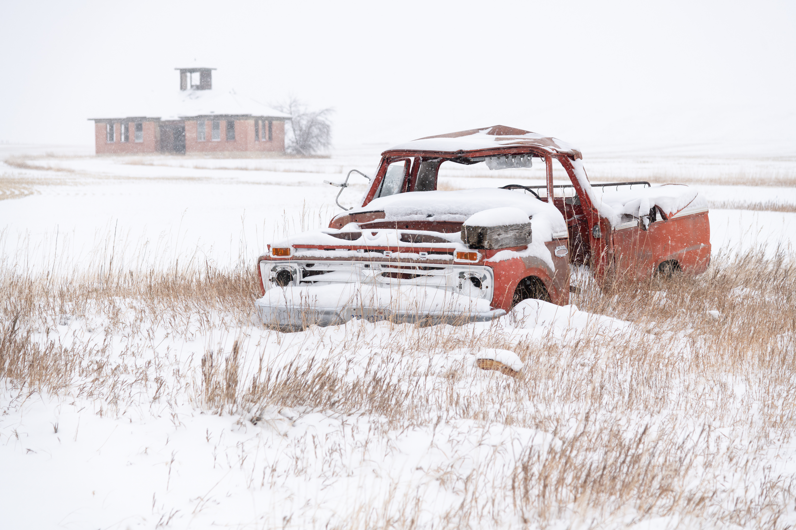 The winter conditions I encountered underlined to me the harsh realities that had faced the families that once called the ‘ghost’ communities home. The snow-covered plains were dotted with abandoned vhicles and derelict farms, schoolhouses and churches, many on the point of collapse, battered by bitter winter and scorching summers.
