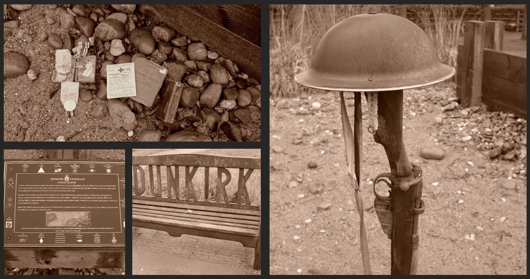 I though it appropriate to lay them on the beach of the Dunkirk Memorial and photograph them, there on the sand and pebbles from Dunkirk . Whether my father would have thought it appropriate, I will never know.